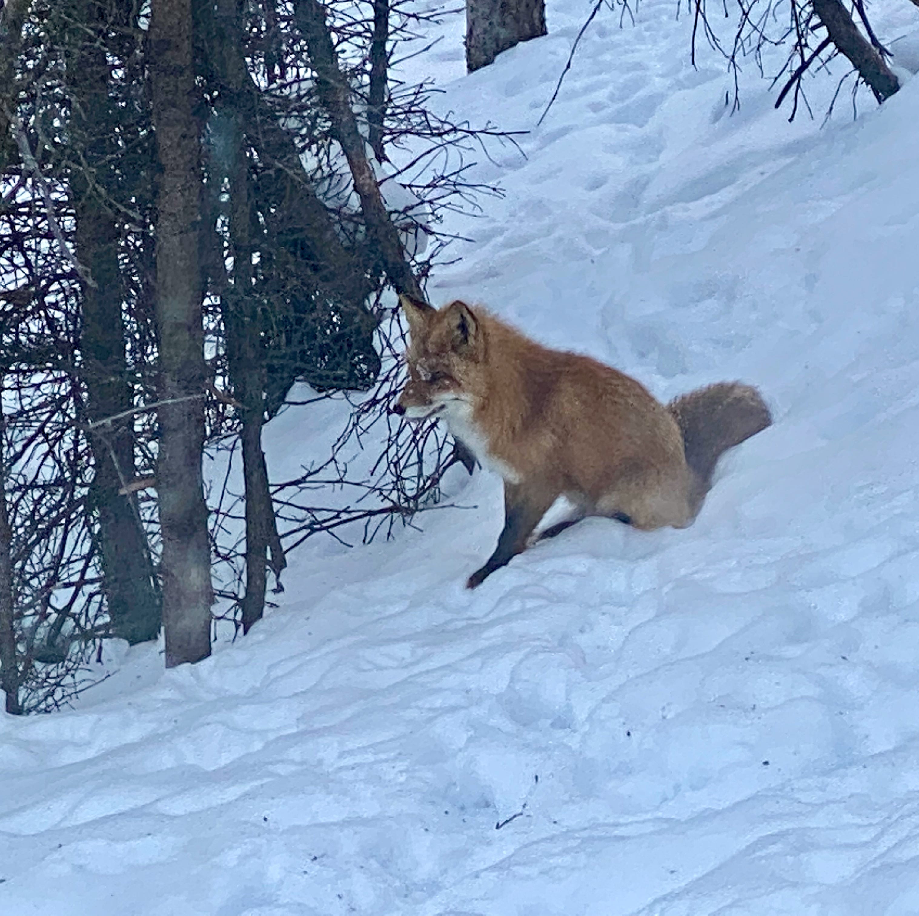 Tracks left in the snow are made with purpose, deliberation—in an awareness of response. The winding steps were decisions made in conversation with the surrounding snow, the sparse light, other visitors unseen but smelled, the sound of our footsteps across the deck—all made in response to the surroundings, the landscape. This is not mindless language—each step pressed into the snow is essential to who and what it means to be a fox in low moonlight, in snow among birches.